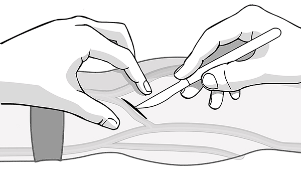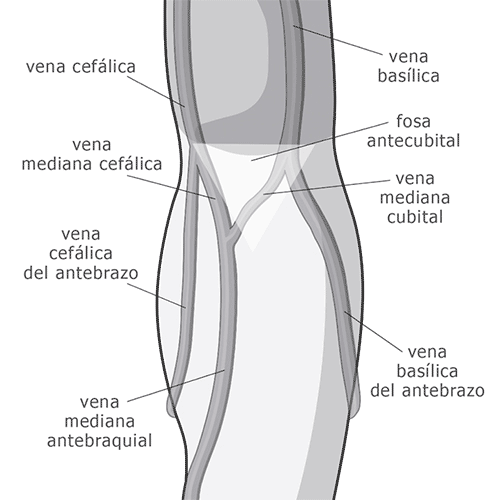 - La vena mediana o la vena basílica del antebrazo