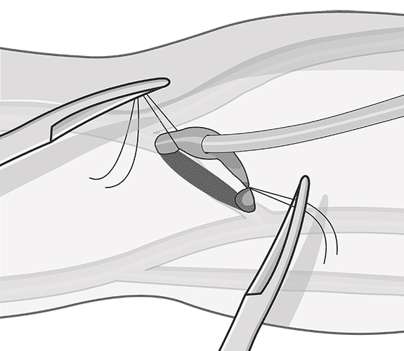 7. Cateterización percutánea de la vena femoral.