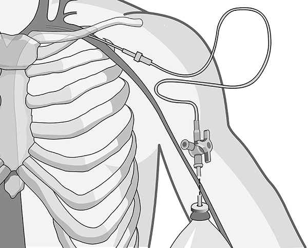 - Una vez lograda la resuscitación del paciente es mejor tolerado un catéter fijado a la parte superior del tórax que un catéter fijado al cuello (yugular interna) o fijado a la ingle, que interfiere con el movimiento del miembro inferior (vena femoral).