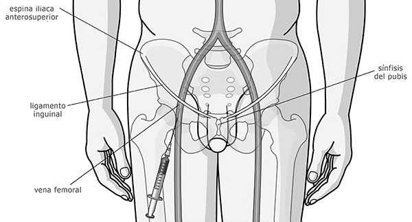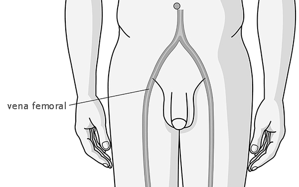 - Cateterización percutánea de la vena femoral.