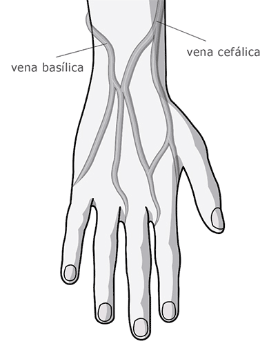 forman una red venosa de fácil y adecuado acceso cuando se deberá administrar fluidos en medianas o pequeñas cantidades. La cateterización venosa a este nivel es bien tolerada ya que interfiere poco con los movimientos del miembro superior. De ser posible se debería colocar el catéter en la mano no dominante. Pueden ser fácilmente equipadas con una llave de doble paso que permitiría una administración intermitente de medicamentos.